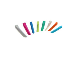 Anatomicky tvarované klinky farebne rozlíšené v rôznych veľkostiach. Konkávne po stranách, perfektná adaptácia do priestoru medzi zubami. Štvorcový koniec umožňuje jednoduché zavedenie a dohora otočená špička zabraňuje poškodeniu papily.
